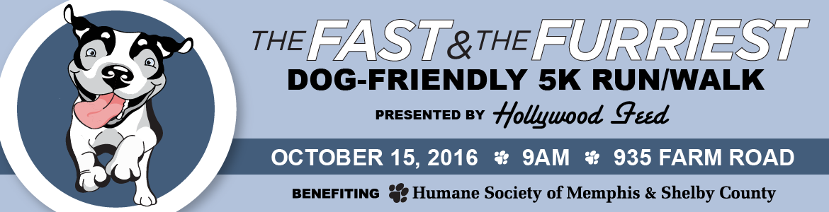 The Fast and the Furriest 5K Run/Walk presented by Hollywood Feed is a DOG-FRIENDLY 3.1 mile run/walk event benefiting the Humane Society of Memphis & Shelby County.We also have a non-competitive one-mile fun walk so that people and dogs of all ability levels can participate!The Fast & The Furriest is one of the only dog-friendly races in Memphis. Leashed, friendly dogs are not only welcome, we even award the fastest (and the furriest of course)!This event features a flat course in the area around the Humane Society friendly for running, walking, and strollers.